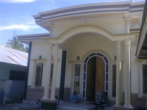 contoh cat dinding luar,resplang dan politure kusen pintu.ini rumah bapak guru heri mopuya selatan,dan maaf rumahnya belum selesai semua......